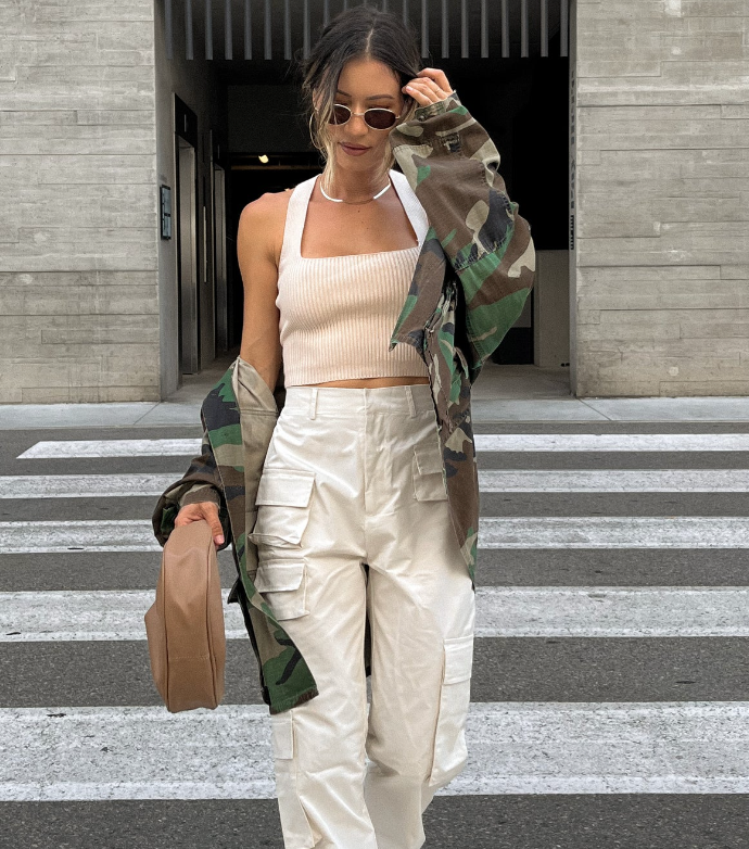 These figure-hugging cargo jeans are a must-have for every occasion. These jeans can be dressed up with a cute crop top and shoes for an evening look or down with a t-shirt and sneakers for a casual approach.
